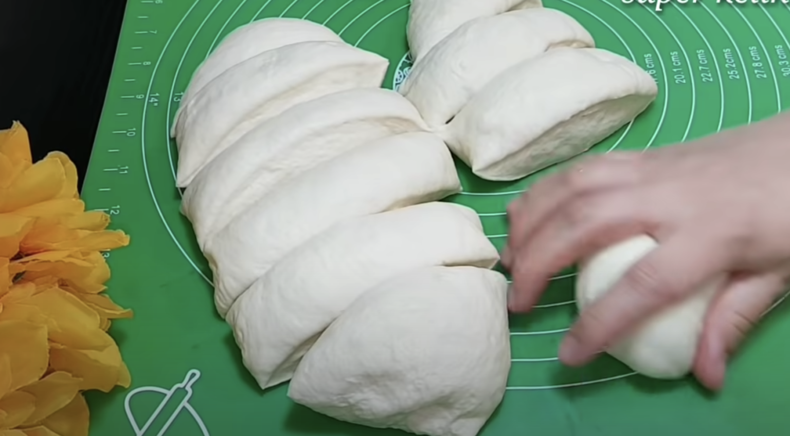 Utwórz z nich kształt przypominający bułeczki. Blachę wyłóż papierem i połóż na niej bułki, okryj folią i ponownie odstaw na 20 minut, do wyrośnięcia.