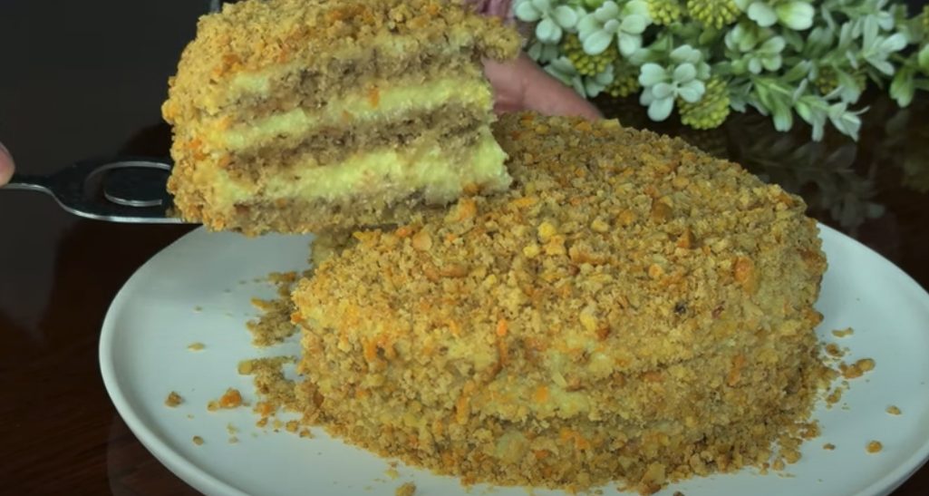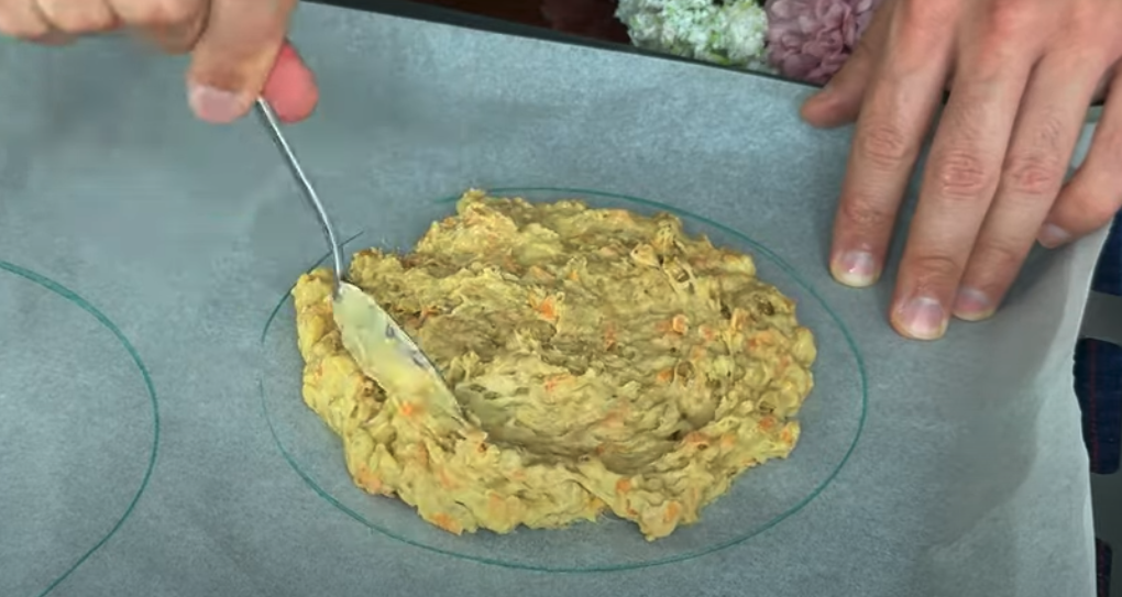 Zetrzyj 2 marchewki i 1 jabłko na tarce. Posiekaj 1 szklankę orzechów włoskich. W dużej misce wymieszaj 300 g mąki tortowej, 1 łyżkę proszku do pieczenia, szczyptę soli i 3 łyżki stewii. Dodaj starte marchewki i jabłko, 1/2 szklanki oliwy z oliwek oraz 1/4 szklanki wody. Wszystko dobrze wymieszaj, aż powstanie gładkie ciasto. Delikatnie dodaj posiekane orzechy włoskie, mieszając, aby równomiernie się rozprowadziły. Nasmaruj formę do pieczenia o średnicy 8 cali (21 cm) oliwą z oliwek.