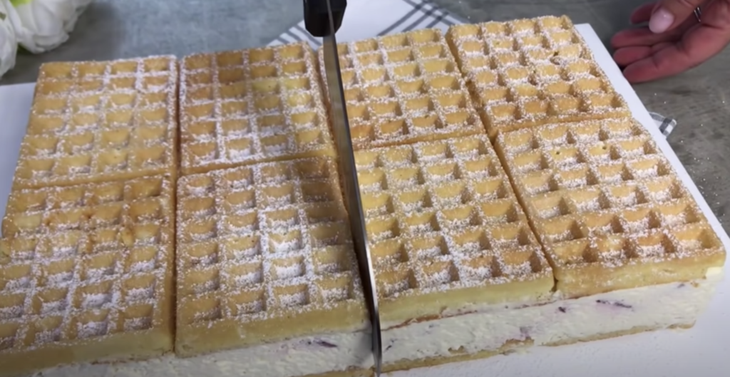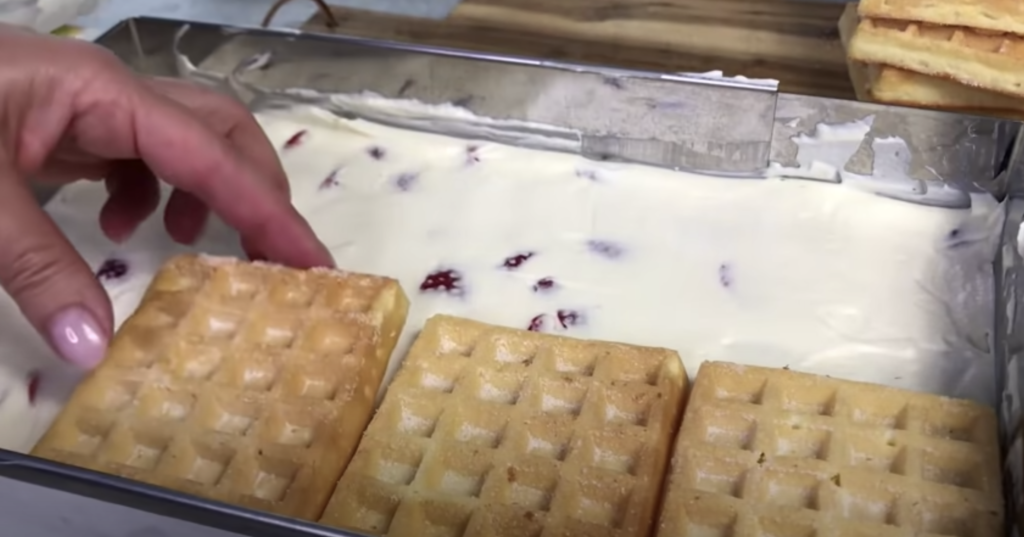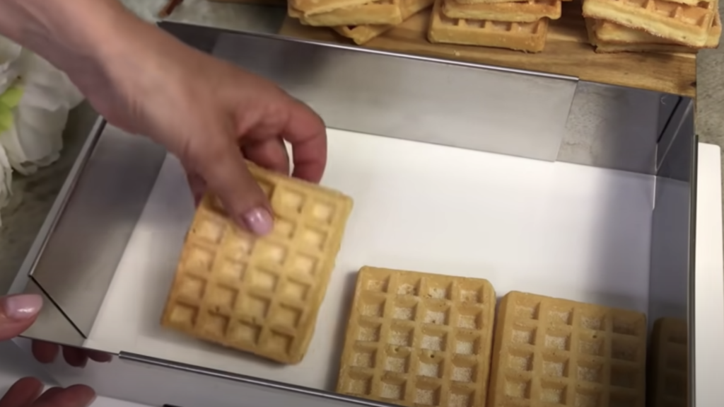 Dodaj kolejny rząd gofrów i włóż ciasto do lodówki na dwie godziny.