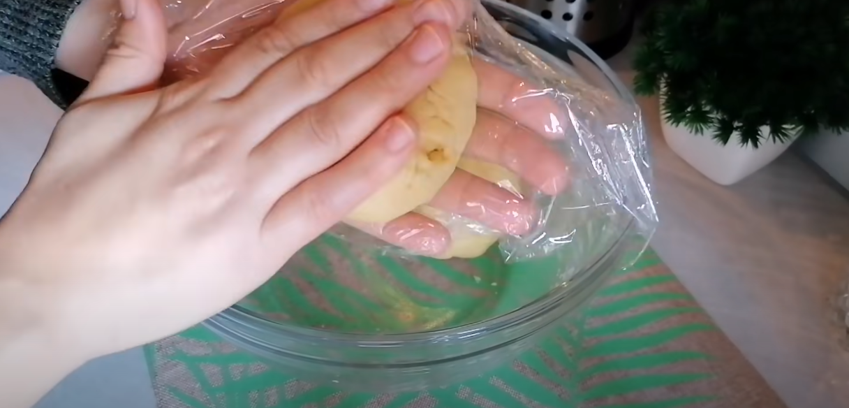 Ciasto dzielimy na dwie części i owijamy je folią spożywczą. Obie części wkładamy do zamrażarki na około 30 minut.