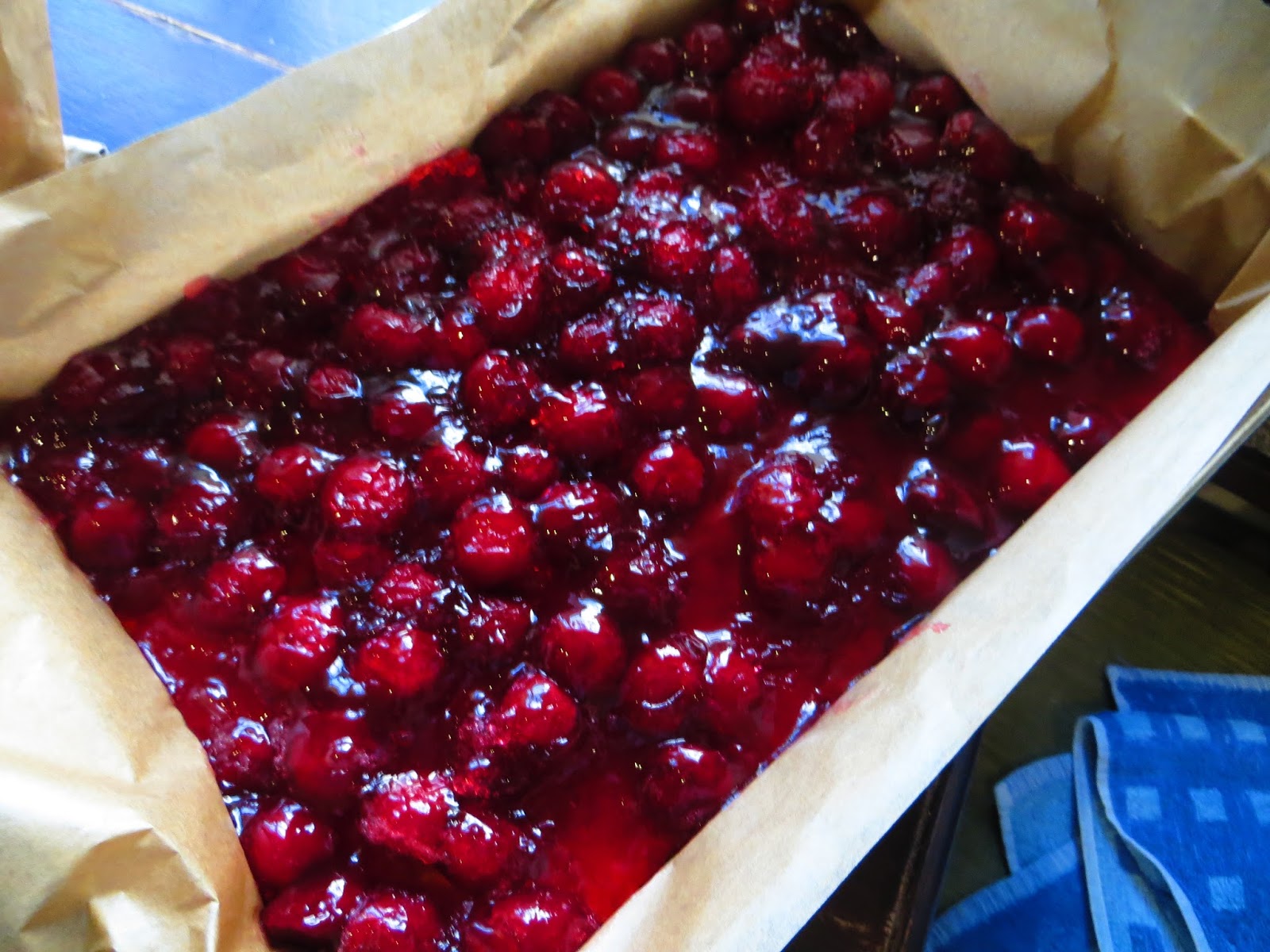Galaretki z żelatyną rozrób w gorącej wodzie i soku wiśniowym. Odstaw do wystudzenia. Po płynnej konsystencji galaretki wsyp mrożone wiśnie i wymieszaj.