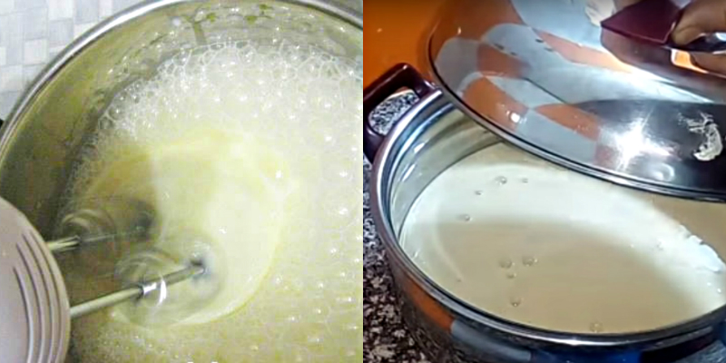 Następnie za pomocą miksera ubijaj do uzyskania wodnistego, gładkiego ciasta. Przykryj miskę pokrywą i pozostaw na 40 minut.