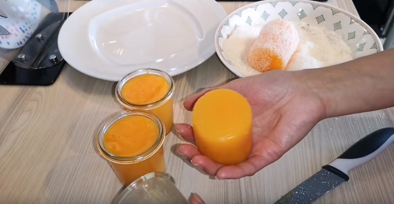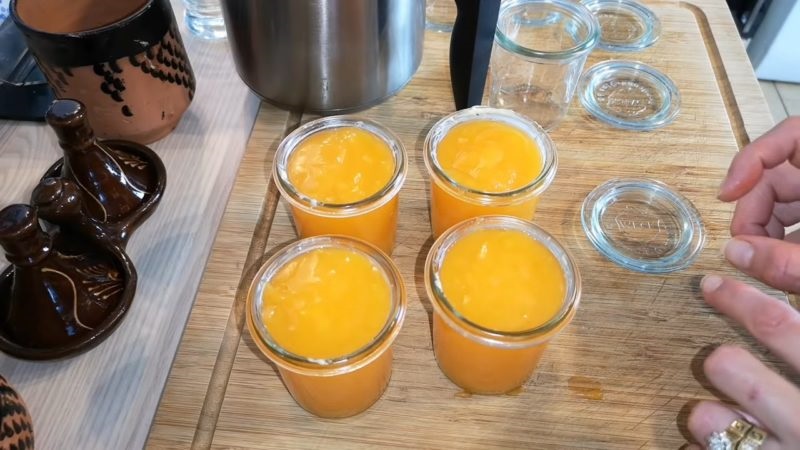 Przygotuj kilka jednakowych pojemników, posmaruj je od środka masłem i przelej do nich mandarynkowy wywar. Wstaw je do lodówki na noc.
