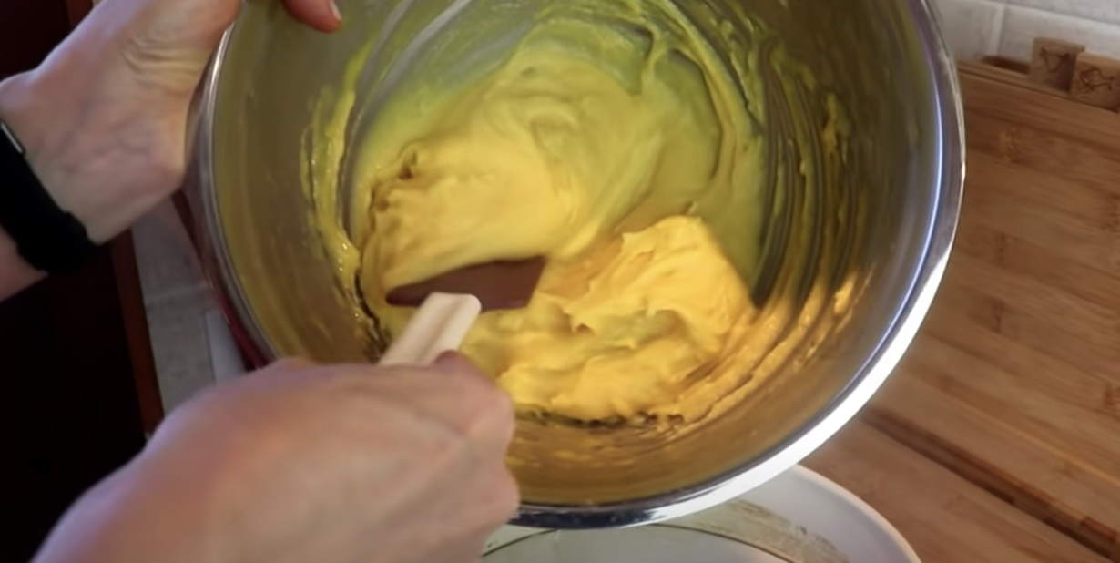 Przygotowane ciasto należy pozostawić do ostygnięcia, po czym należy upiec drugą połowę w taki sam sposób. Następnie, przygotuj krem. Do garnka wsyp mąkę, cukier, dodaj mleko i jajka, gotuj na wolnym ogniu. Mikserem ubij masło, po czym łyżeczkami powoli dodawaj do niego schłodzony budyń.