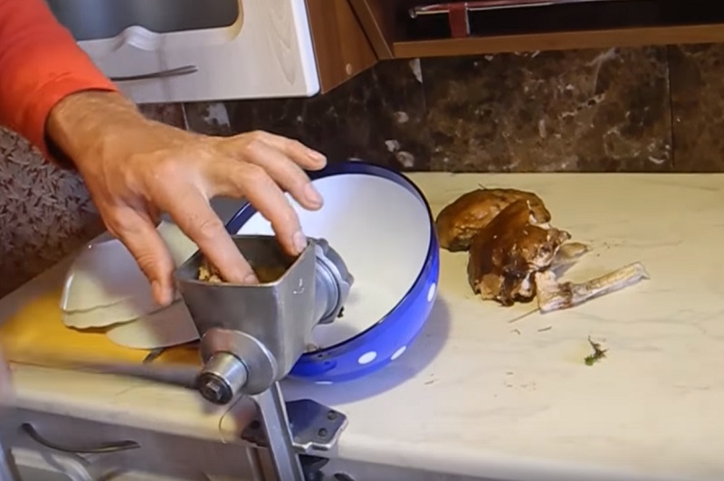 Weź spód nasadki grzybów, gdyż tam znajdują się zarodniki i przemiel je przez maszynkę do mięsa. Pamiętaj, aby wcześniej ich nie myć. Powstałą masę, należy rozrzedzić z niewielką ilością wody, tak aby powstała lepka konsystencja.