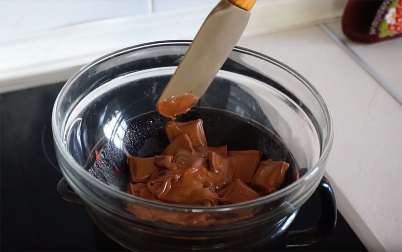 Teraz czas na polewę czekoladową. Rozpuść czekoladę mleczną w zwykłej kąpieli wodnej albo przy pomocy mikrofalówki.