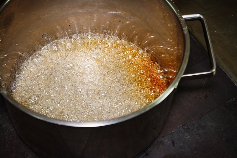 Ponownie wkładamy do niego śliwki i i podgrzewamy wszystko na małym ogniu. Znów wyciągamy śliwki, by po jakimś czasie znów je podgrzać w syropie. Ponawiamy ten proces tak długo aż śliwki będą miękkie i błyszczące. Przed ostatnim moczeniem śliwek do syropu należy dodać kwasek cytrynowy.