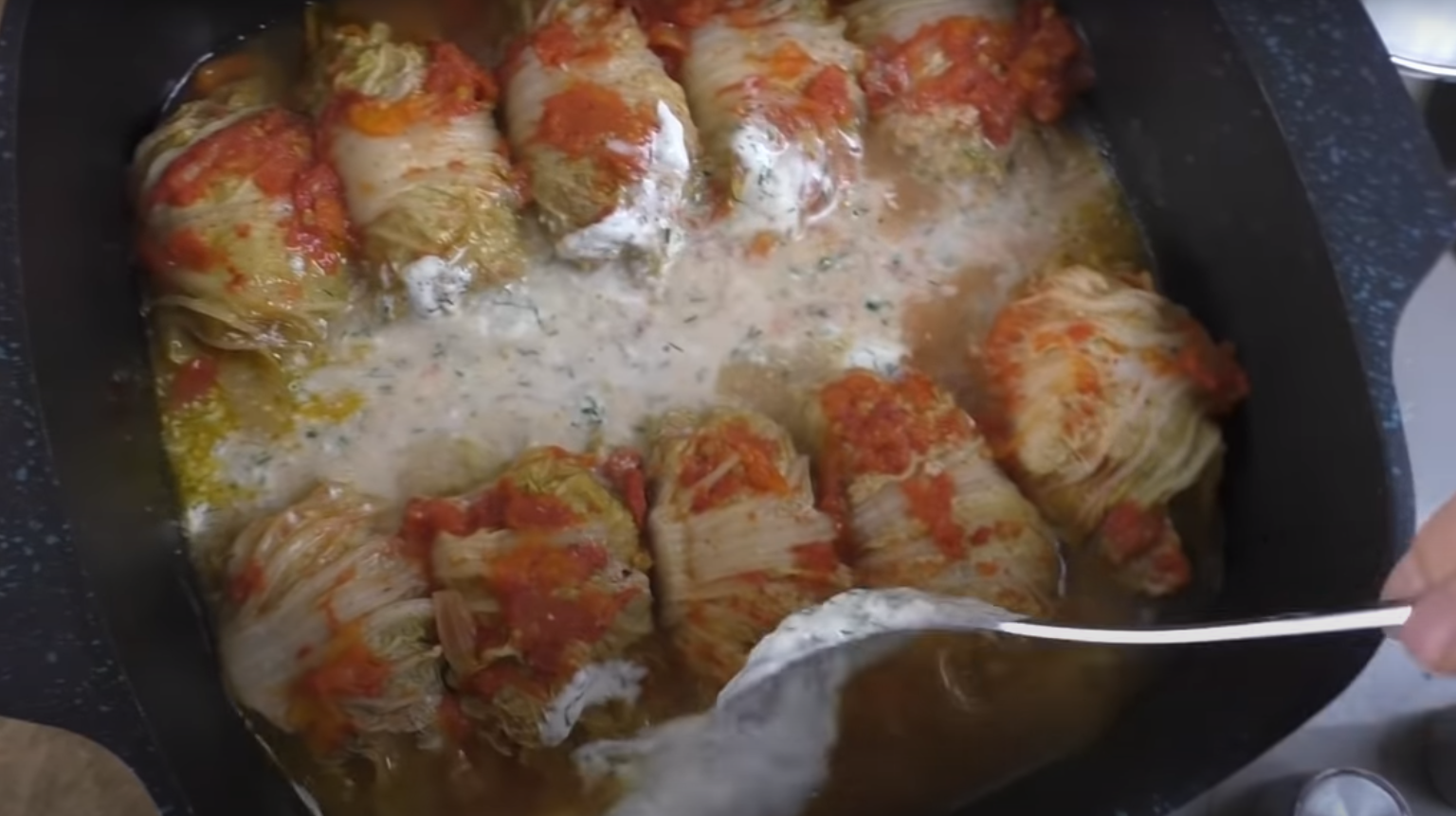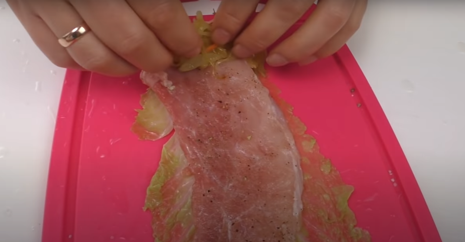 Pozbądź się twardych części kapusty. Liście włóż do miski i zalej wrzątkiem. Odczekaj 5 minut aby rozmiękły. Miękką kapustę wyjmij z wody, a następnie osusz. Na każdym liściu ułóż po kawałku mięsa. Na to nałóż trochę cebuli i marchewki. Tak przygotowane liście z mięsem i warzywami zwiń w rulony.