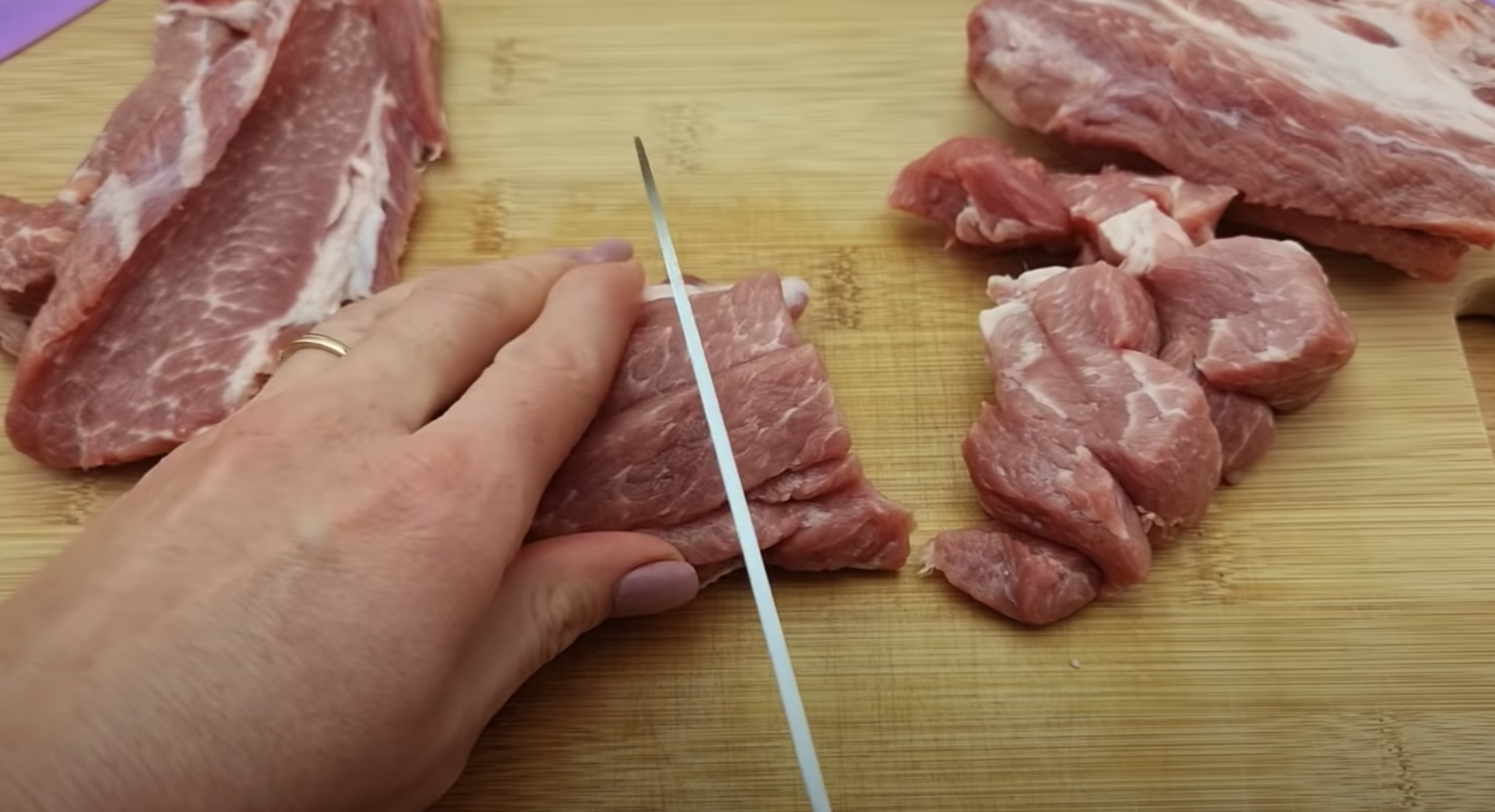 Mięso kroimy w kostkę i układamy na blaszce.