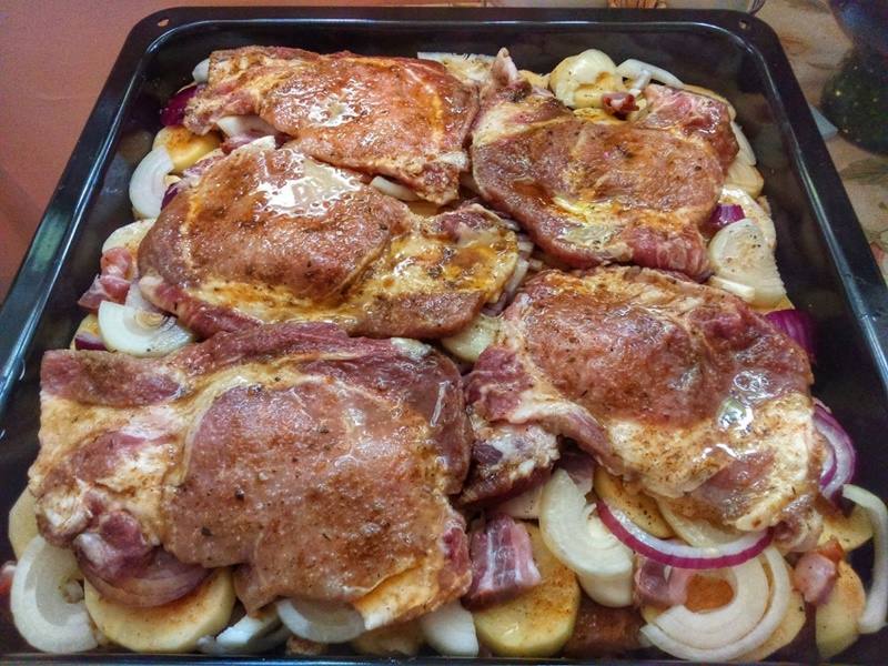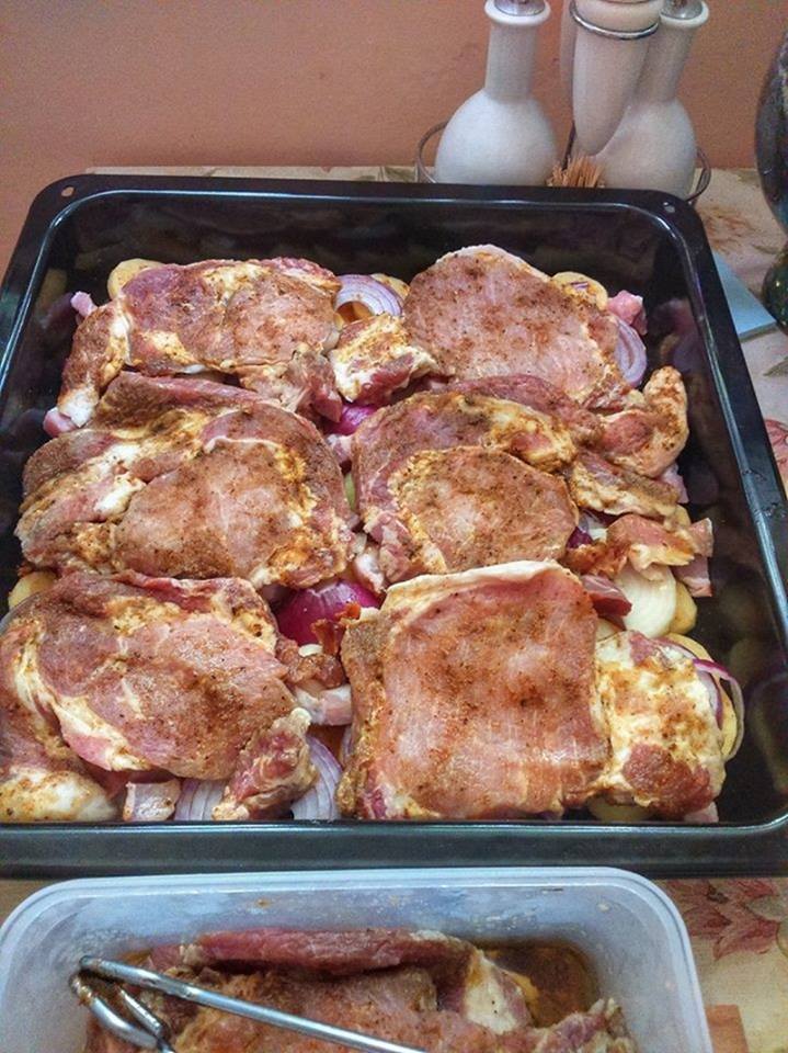 Na wierzch kładziemy zamarynowaną karkówkę.