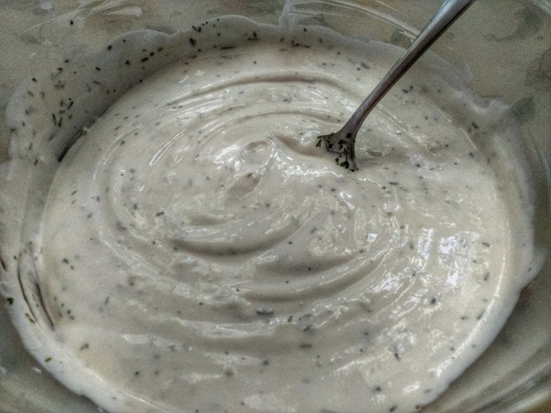 W między czasie przygotowujemy sos. Wystarczy połączyć śmietanę z wyciśniętym czosnkiem i dodać ulubione przyprawy do smaku.