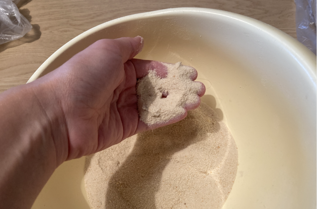 Mięso możesz samodzielnie zmielić w domu lub kupić gotowe w sklepie. Ciemny chleb kroimy na mniejsze kawałki. Skórkę odkrawamy i wkładamy do piekarnika, aby ją ususzyć. Z wysuszonej skórki przygotowana zostanie bułka tarta do klopsików.