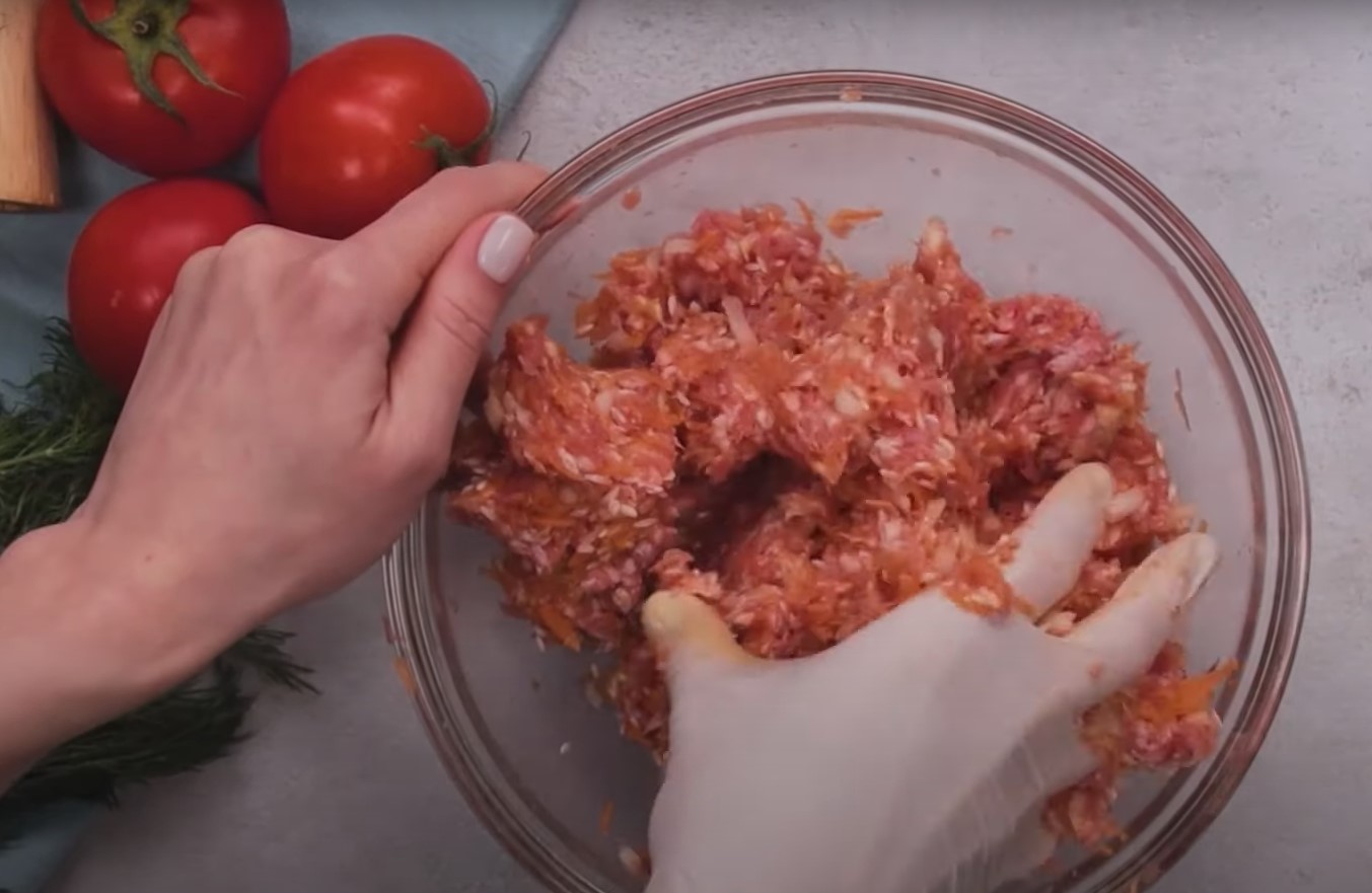 Mięso mielone przełóż do miski, dodaj ryż i drobno posiekaną cebulę. Marchewki umyj i zetrzyj na drobnej tarce. Dodaj do mięsa razem z przeciśniętym przez praskę czosnkiem i jajkiem. Dopraw i dobrze wymieszaj.