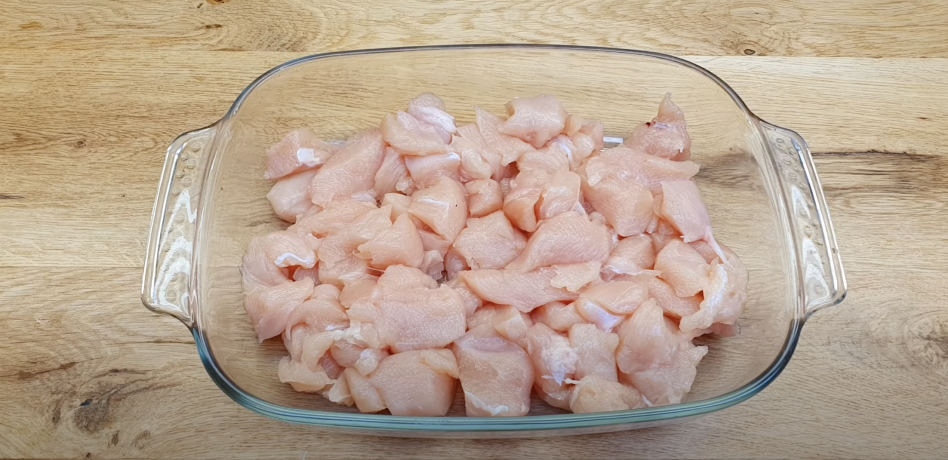 Przygotuj naczynie żaroodporne, możesz je delikatnie posmarować oliwą z oliwek. Kurczaka przełóż do naczynia.