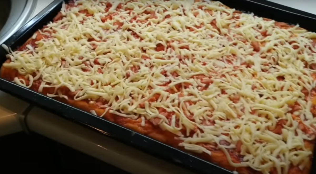 Następnie posmarować powierzchnię wcześniej przygotowanym sosem pomidorowym z dodatkiem soli, pieprzu, bazylii i czosnku.