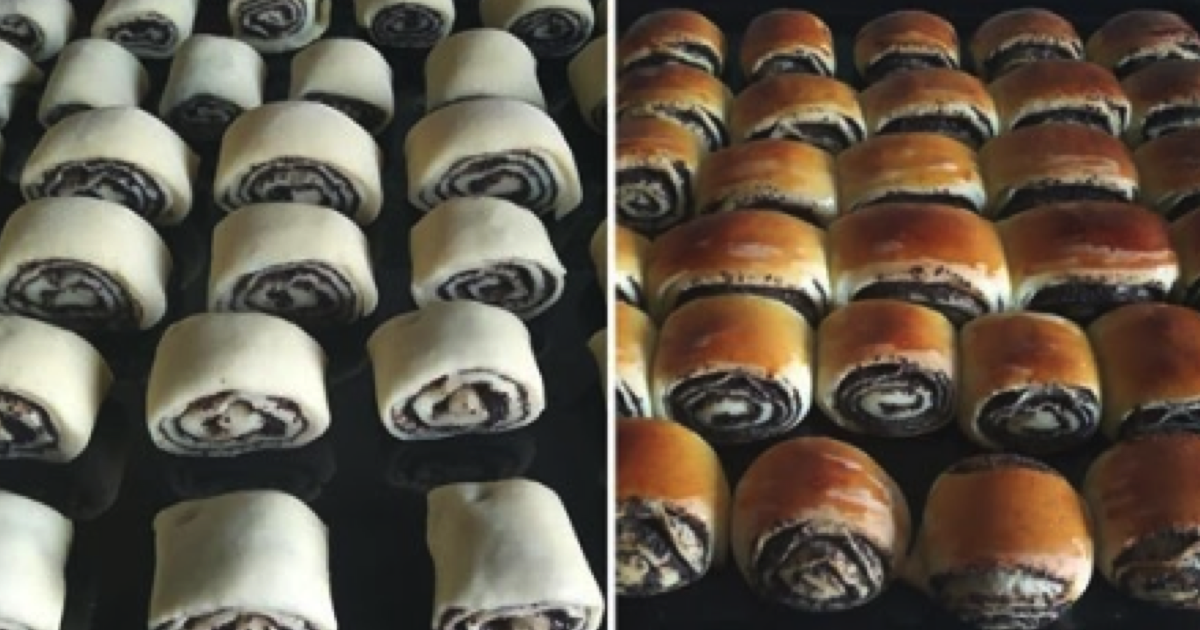 Ciasto rozwałkuj na dość cienką warstwę i podziel je na kilka części. Każdy kawałek posmaruj nadzieniem makowym, a następnie zwiń w rulon. Długie rulony pokrój na mniejsze kawałki, by stworzyć jak najwięcej ślimaczków.