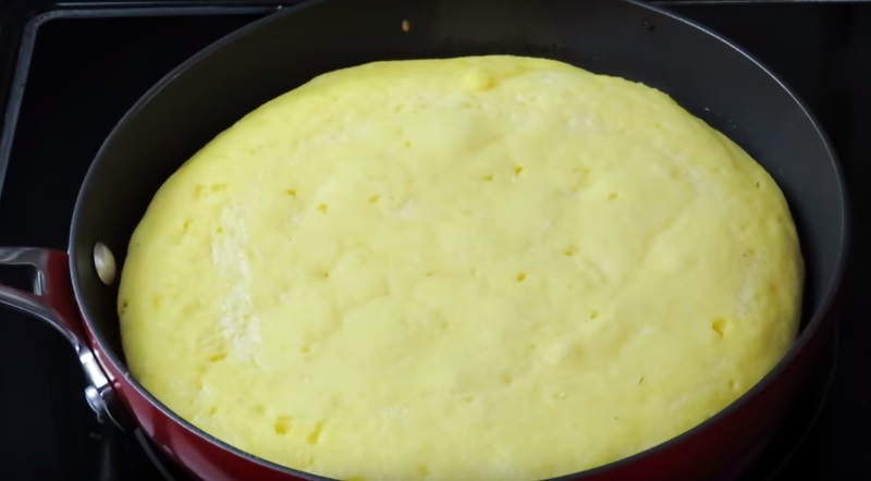 Całość smażymy na średnim ogniu pod przykryciem około 5 minut na złoty kolor. Następnie odwracamy nasz placek i smażymy jeszcze z 3 minuty.