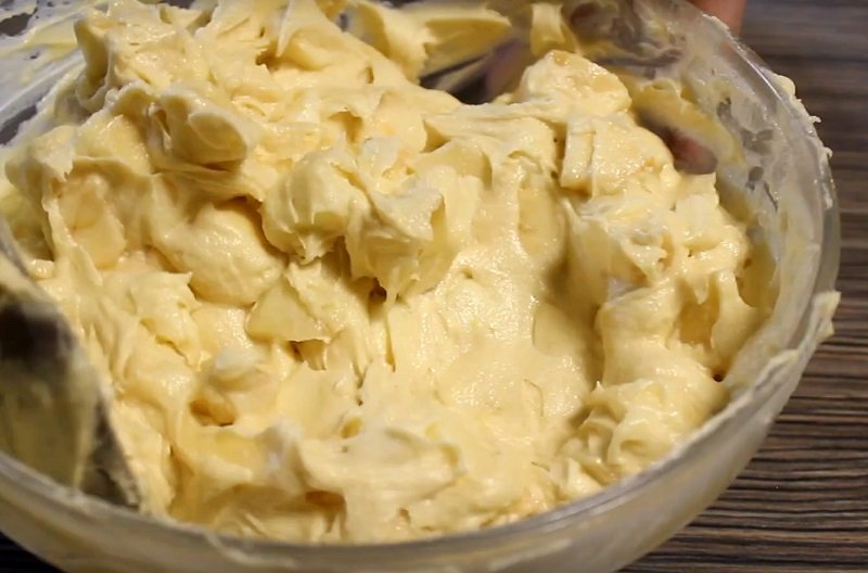 Miękkie masło miksuj lub mieszaj ręcznie z cukrem, cukrem waniliowym oraz solą. Nie przerywając miksowania, dodawaj stopniowo jajka.