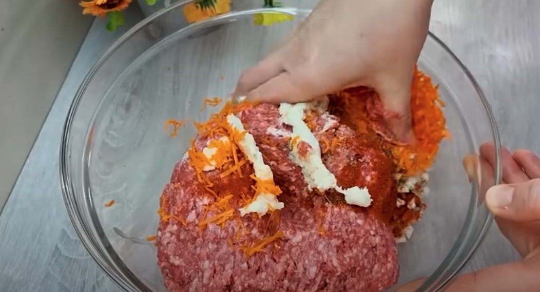 Namocz 4 kromki chleba w 100 ml mleka i odstaw na około 10 minut. Obierz i drobno posiekaj 2 cebule oraz 1 małą marchewkę. W dużej misce wymieszaj 750 gramów mięsa mielonego, namoczony chleb (wyciśnięty z mleka), posiekane cebule, marchewkę oraz 1 jajko. Dopraw solą, pieprzem i papryką do smaku. Nasmaruj formę do pieczenia olejem roślinnym i przełóż do niej przygotowaną masę mięsną.
