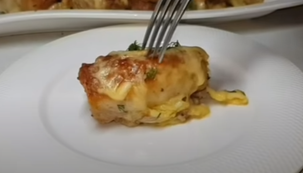 Całość wstaw do piekarnika nagrzanego na 180 stopni Celsjusz i piecz około przez 40 minut pod koniec czasu wyjmij rolady z piekarnika, posyp startym serem i z powrotem wstaw do piekarnika.