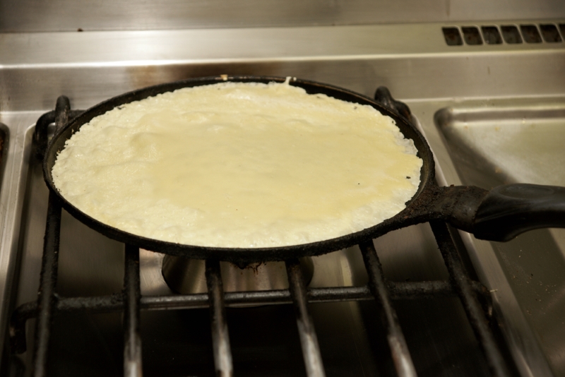 Do jajek dodajemy olej oraz mleko. Patelnię należy delikatnie posmarować masłem i smażyć na niej naleśniki z obu stron na złocisty kolor.