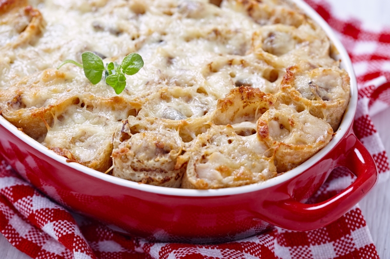 Naleśniki kładziemy na blaszce do pieczenia i smarujemy je śmietaną lub jogurtem naturalnym, jeśli chcemy, aby danie miało mniej kalorii.