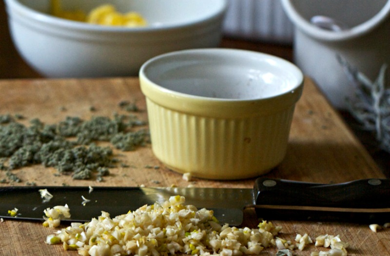 Do całości dodaj jeszcze miękkie masło oraz szczyptę pieprzu i soli do smaku. Powstałą marynatą natrzyj kurczaka od środka i na zewnątrz, a potem umieść go na 4 godziny w lodówce, aby mięso nabrało należytego aromatu.