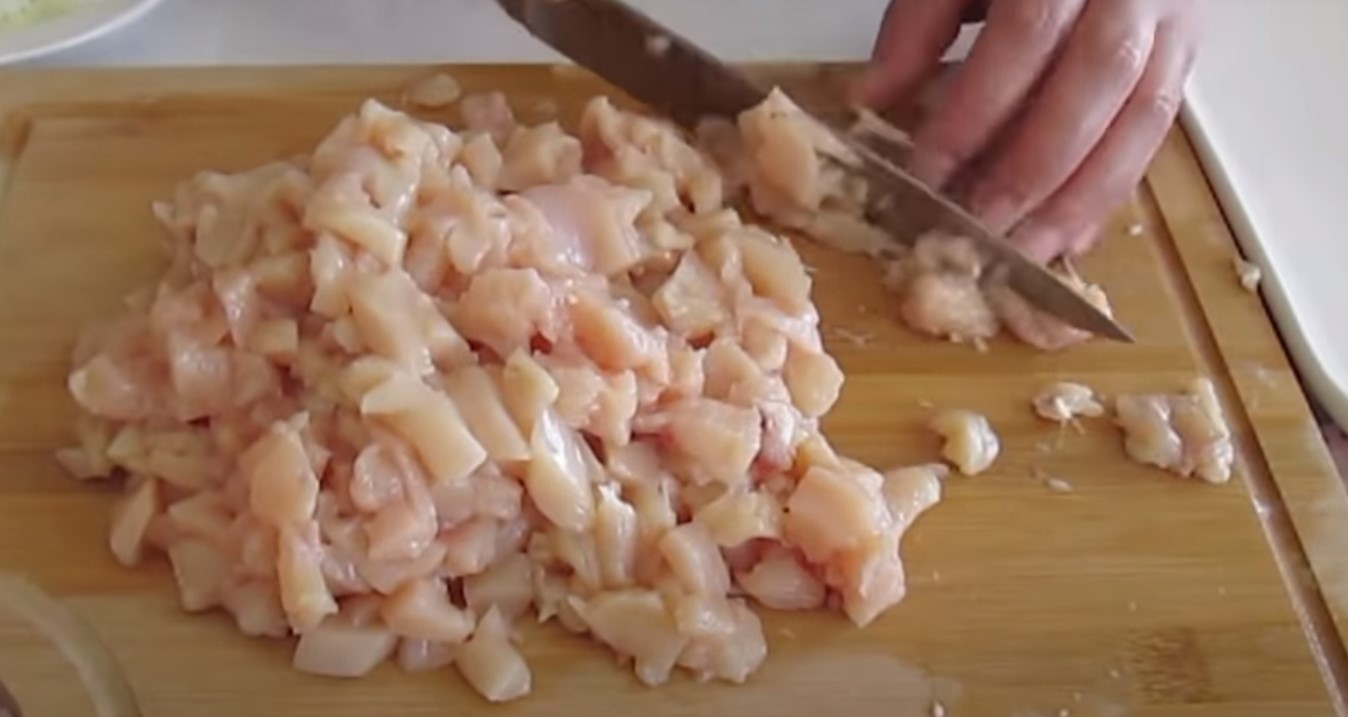Cebulę, paprykę i czosnek drobno pokrój. Pomidory umyj i pokrój na małe kawałki. Pokrój również piersi z kurczaka na małe kawałki.