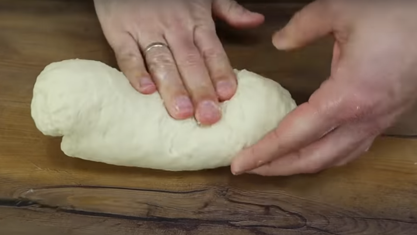 Jogurt i wodę wlewamy do jednej miski, dodajemy białko od jajka, sok z cytryny, sól, cukier i dokładnie wymieszać przy użyciu trzepaczki. Po wymieszaniu dodajemy proszek do pieczenia i mąkę. Po dodaniu proszku i mąki znowu dokładnie mieszamy. Dodajemy masło i z takiej mieszanki robimy gładkie ciasto.