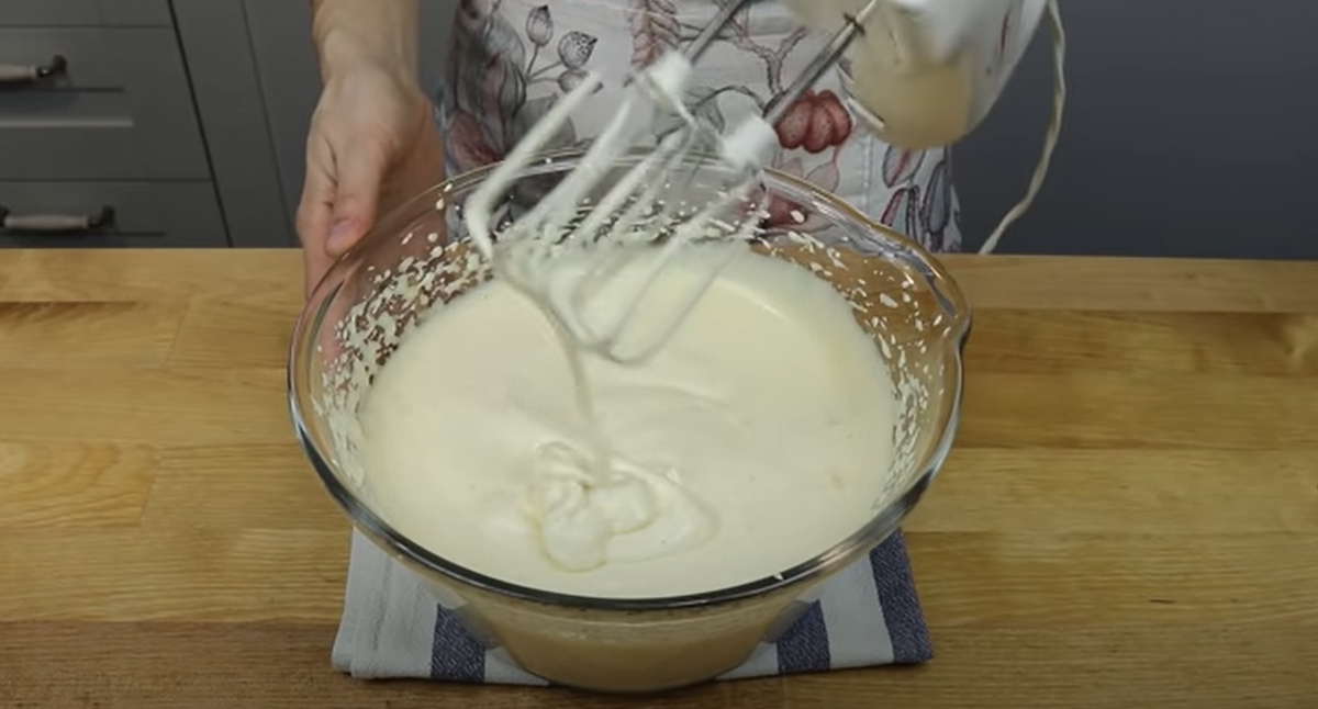 W pierwszej kolejności przygotuj biszkopt, czyli ubij jajka z cukrem za pomocą miksera na najwyższych obrotach urządzenia, miksuj przez około 10 minut, aż do powstania puszystej piany na koniec należy dodać cukier waniliowy oraz sól i wszystko wymieszać.