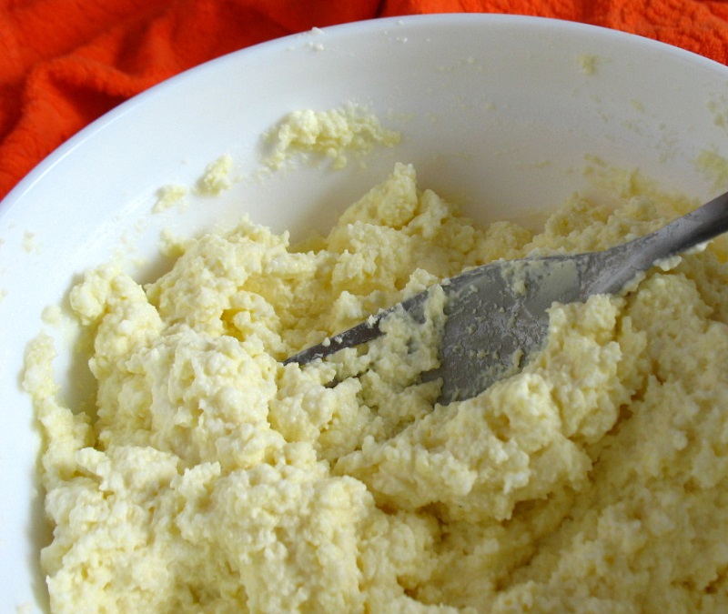 Twarożek połączyć z wcześniej roztopioną i ostudzoną margaryną, cukrem, wanilią, solą oraz żółtkami. Dodawać mąkę z sodą oczyszczoną i zagniatać, aby uzyskać delikatne ciasto.