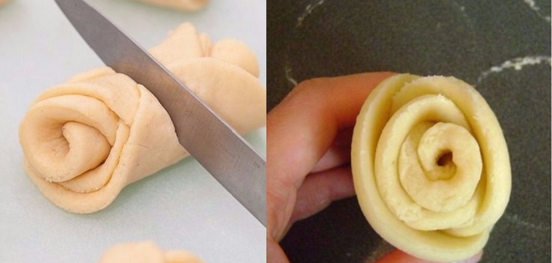 Każdy z nich pokroić na pół, dzięki czemu uzyska się 2 róże.