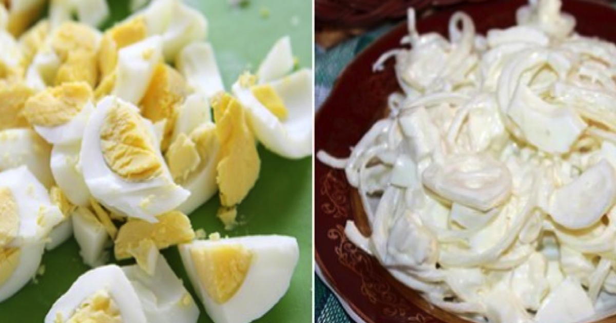 Tak pozostawiamy ją na około 15-20 minut. Kiedy czas upłynie, należy cebulę ponownie odcedzić, następnie dodać do niej pokrojone jajka i zagęścić majonezem. Całość doprawiamy według uznania – najlepiej solą i pieprzem. Pychota!