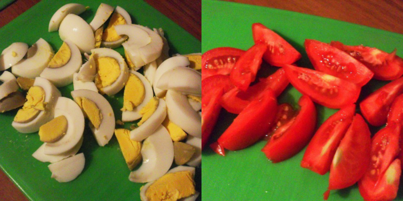 Następnie wykładaj ją na talerz wyłożony papierem kuchennym, by odsączyć z niej nadmiar tłuszczu. Zostaw do wystygnięcia. Następnie poprzekrawaj ją na półpierścienie. Tak samo pokrój jajka i dodaj je do cukinii.