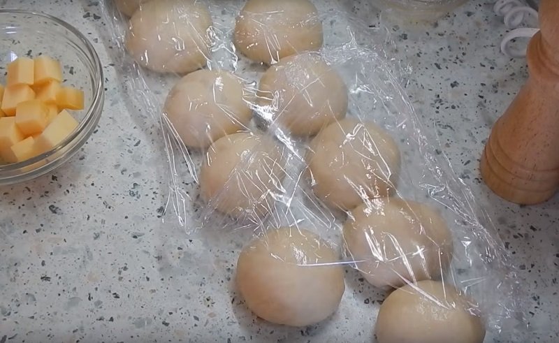 Przygotuj blachę do pieczenia, wyłóż ją papierem, a następnie ułóż na niej uformowane bułeczki. Przykryj blachę folią spożywczą i odstaw na jakieś 20 minut.