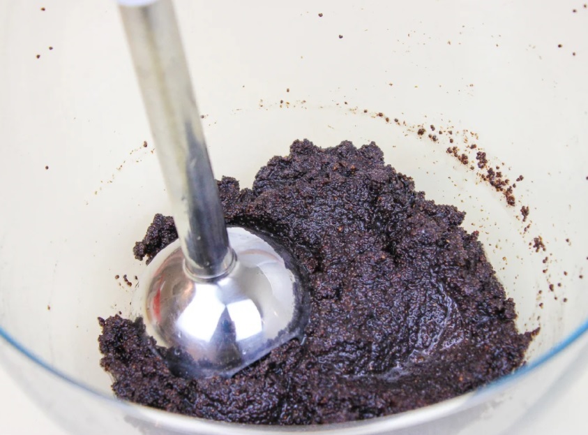 Następnym krokiem jest przygotowanie nadzienia makowego. W tym celu zmielony mak wsypujemy do miski, zalewamy wrzątkiem na około 3 cm nad makiem i odstawiamy do przestygnięcia na około godzinę. Po upływie czasu pozbywamy się nadmiaru wody, a mak mieszamy mikserem.
