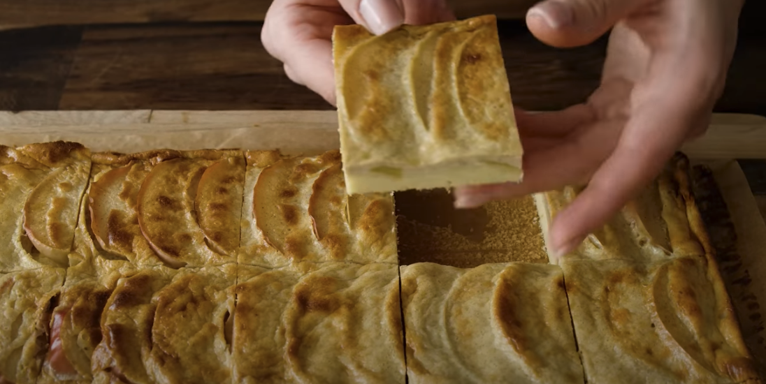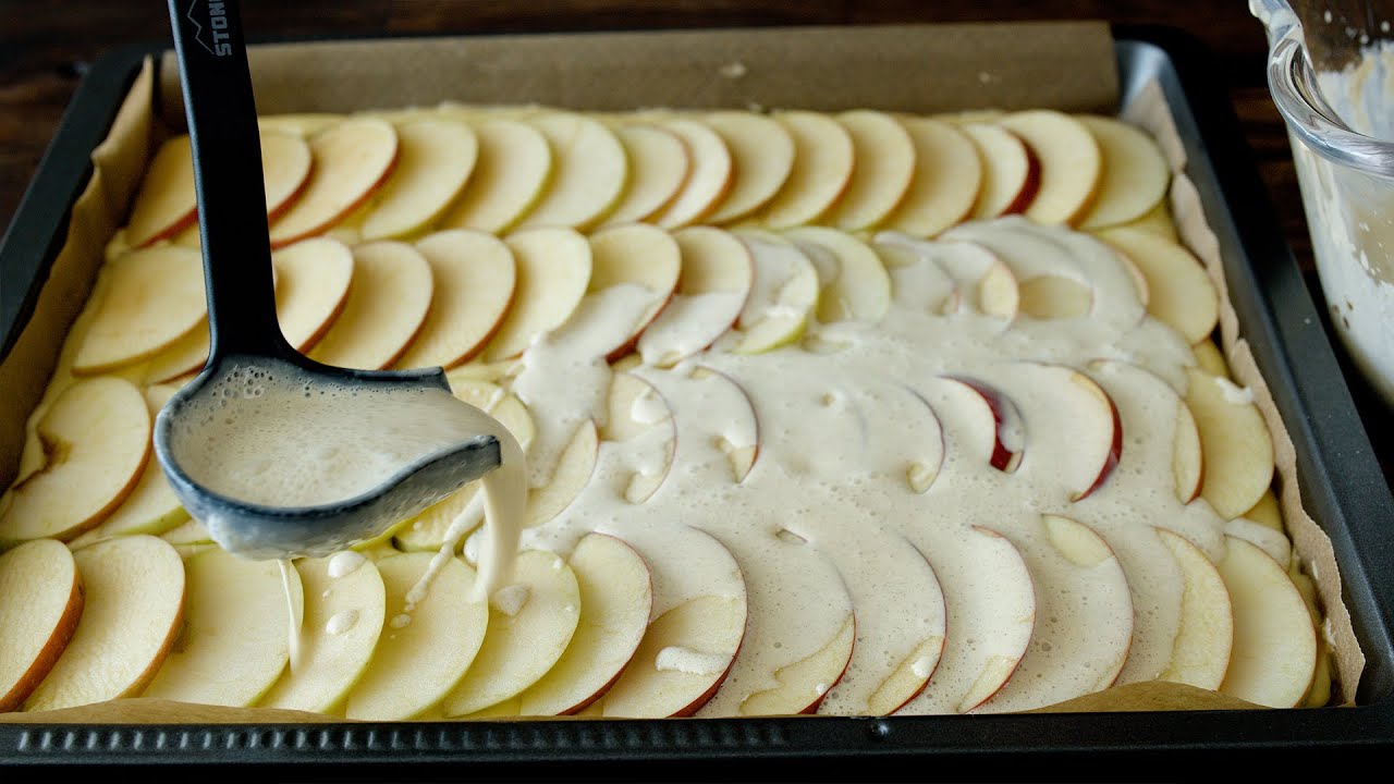 W dużej misce utrzyj 100 g masła z 200 g cukru pudru, aż masa stanie się puszysta i jasna. Dodaj 5 jajek, jedno po drugim, dokładnie mieszając po każdym dodaniu. Dodaj skórkę z cytryny i dobrze wymieszaj. Stopniowo dodawaj 250 g mąki, mieszając aż do uzyskania jednolitej masy. Obierz 4 jabłka, usuń gniazda nasienne i pokrój na cienkie plastry. Wyłóż formę do pieczenia pergaminem lub nasmaruj masłem. Wlej połowę ciasta do formy i równomiernie rozprowadź. Nałóż połowę pokrojonych jabłek na ciasto.