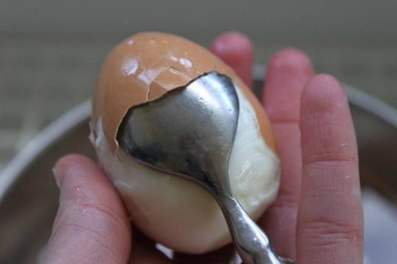 Obieranie jajka stanie się dużo łatwiejsze, jeżeli użyjesz w tym celu łyżki.