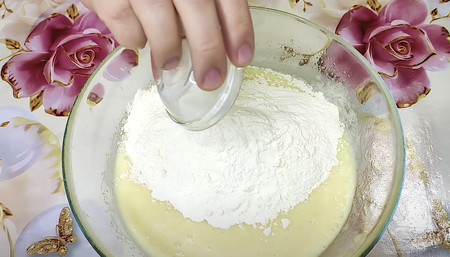 Ubij jajka wraz z cukrem. Roztop masło, a następnie wraz z jogurtem lub kefirem dodaj mieszając. Później dołącz mąkę i proszek do pieczenia . Możesz również dodać bakalie np. rodzynki, orzechy lub rozdrobnioną czekoladę.