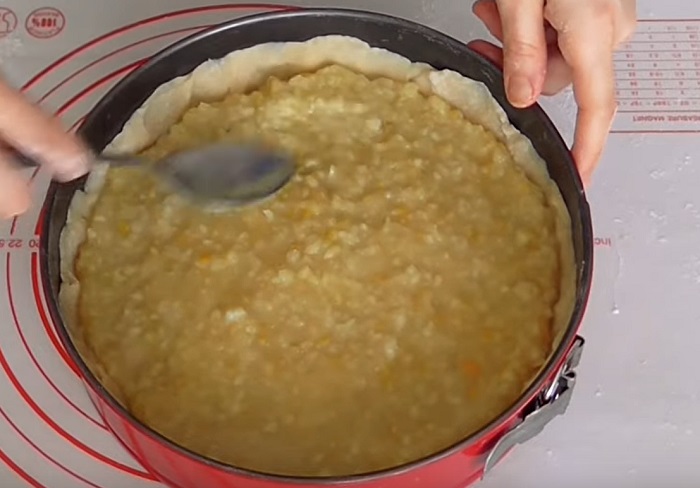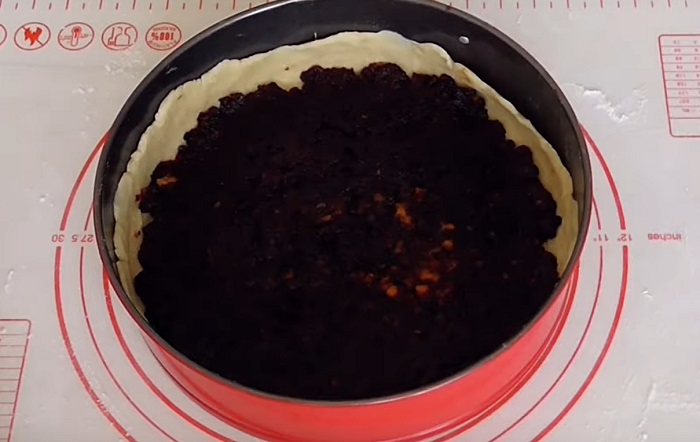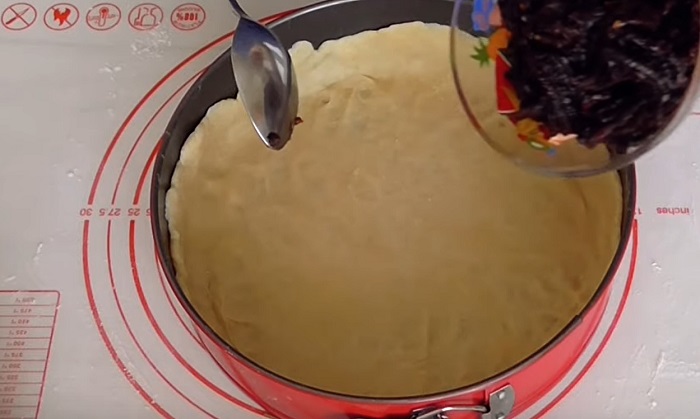 Teraz już możesz rozwałkować większą część ciasta i włożyć ją do naczynia, w którym ciasto będzie pieczone. I jeszcze jedna ważna rzecz, zrób boki formy, pamiętając o wcześniejszym natłuszczeniu jej kawałkiem masła. Formę możesz przykryć również pergaminem.
