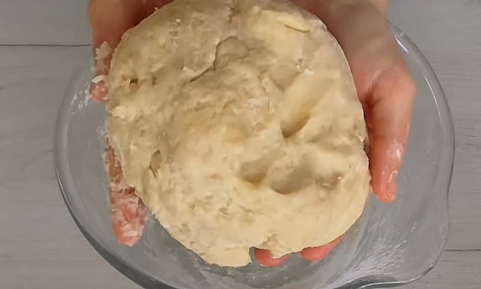 Teraz możesz Wymieszać i nie zapomnij o wlaniu mleka. Zrób ciasto, tworząc z niego kulkę. Następnie połóż ciasto na stole, który należy wcześniej posypać mąką.