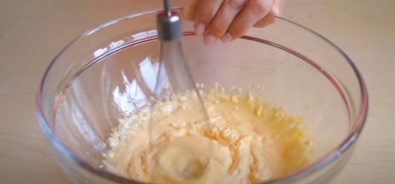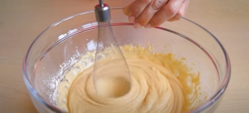 Do miski wbijamy żółtka, wsypujemy cukier zwykły oraz waniliowy, sól i roztopione wcześniej masło. Wszystko razem ubijamy.
